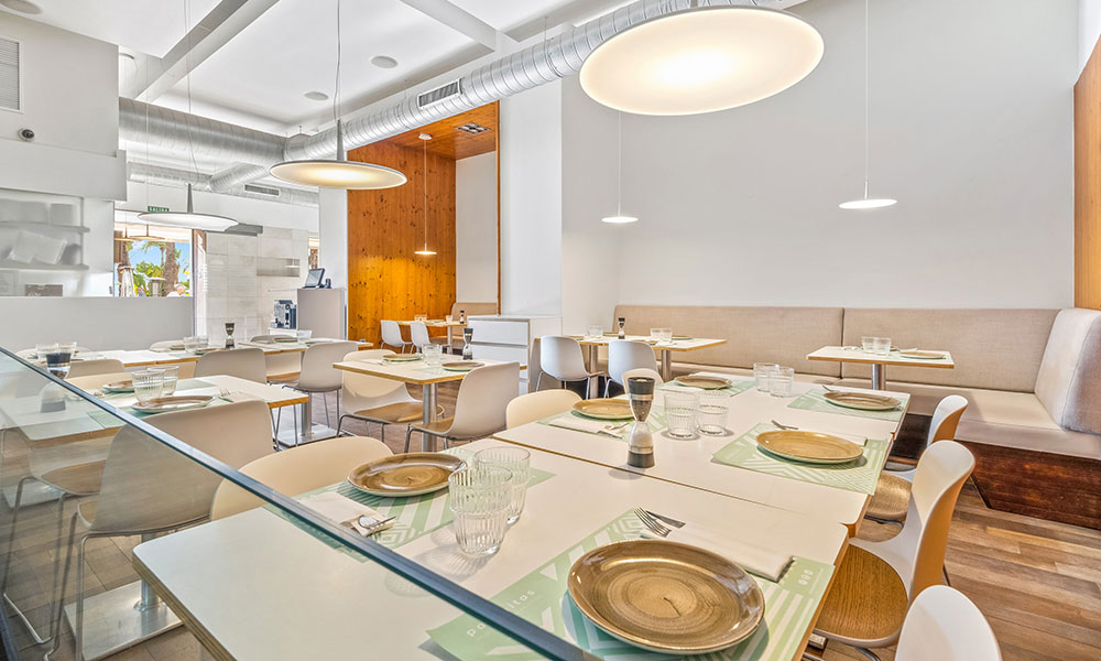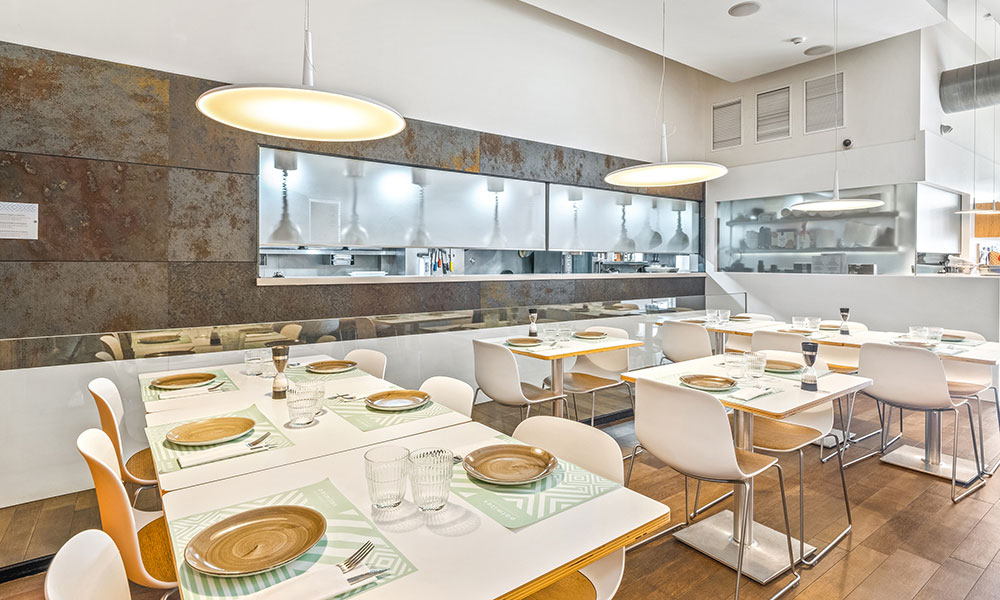 Nuestro local de aire minimalista es un espacio amplio, acogedor y muy luminoso. Con una decoración sobria y moderna, en su interior encontrarás distintas zonas si prefieres más intimidad, o con más amplitud si vienes con la familia o amigos.